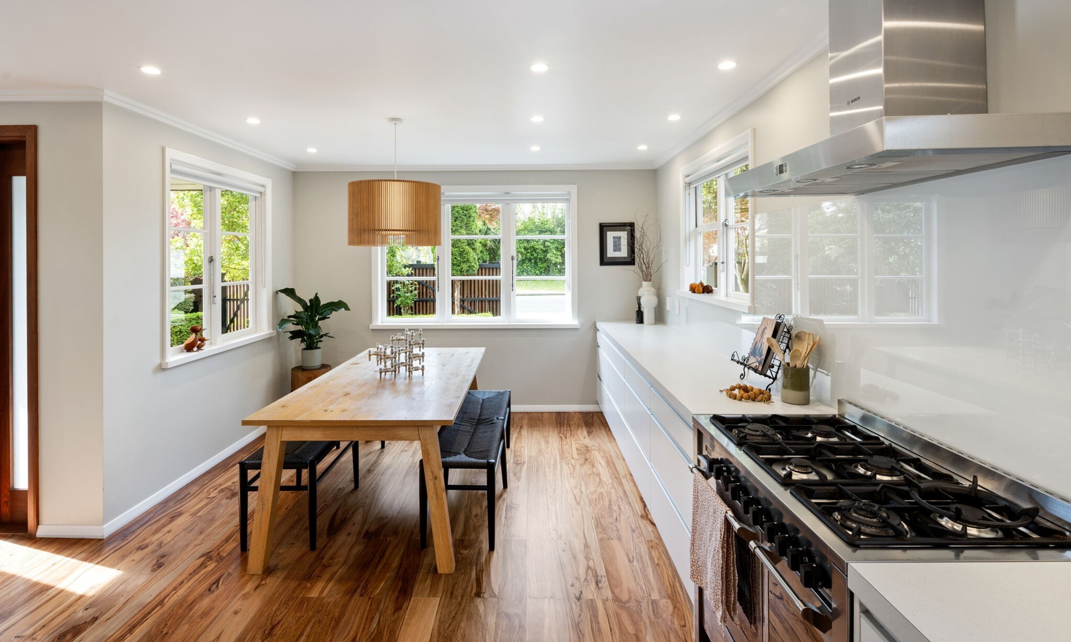 This refined transformation of a 1940's state house, balances original character with contemporary features. Thoughtful extensions were introduced to create light-filled spaces and inject modern comforts, necessary to support the needs of a growing family. Formal, impactful landscaping was utilised to anchor the home and maximise street appeal.
