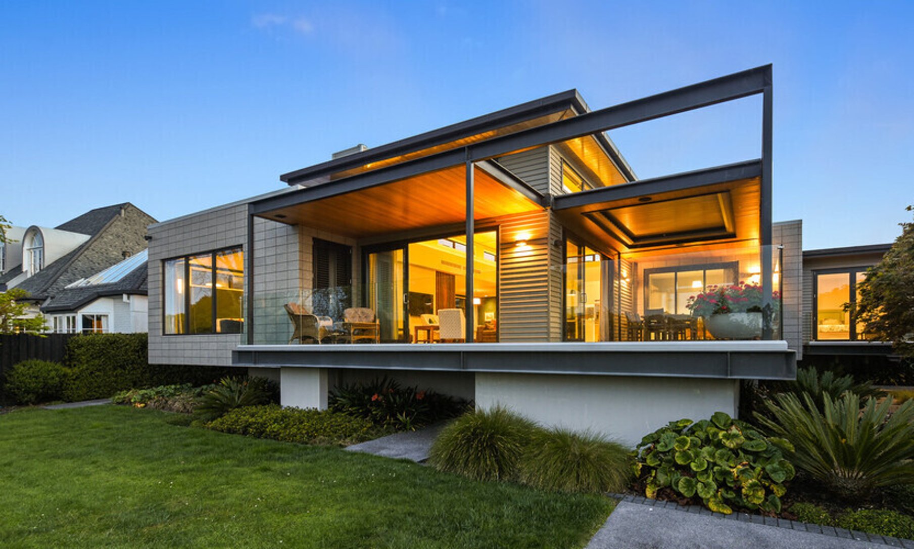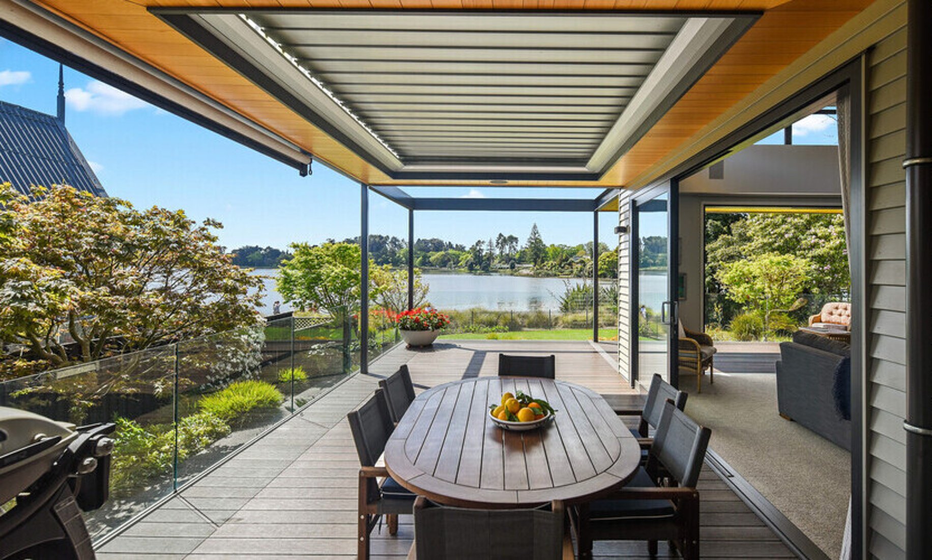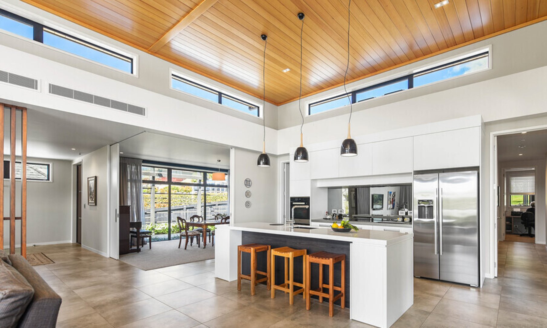 This contemporary, low-maintenance home features a bold pop-up roof form with clerestory windows that flood the main living area with natural light. Elevated floor levels, sheer curtains, and strategic landscaping balance privacy with the framing of stunning lake views. Thoughtfully planned, the home offers a seamless flow between public and private spaces, creating a harmonious connection between interior and exterior, and delivering a refined, liveable design that responds to both context and lifestyle.