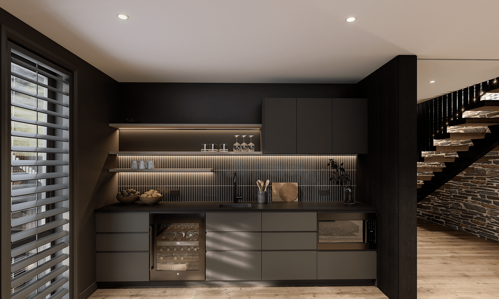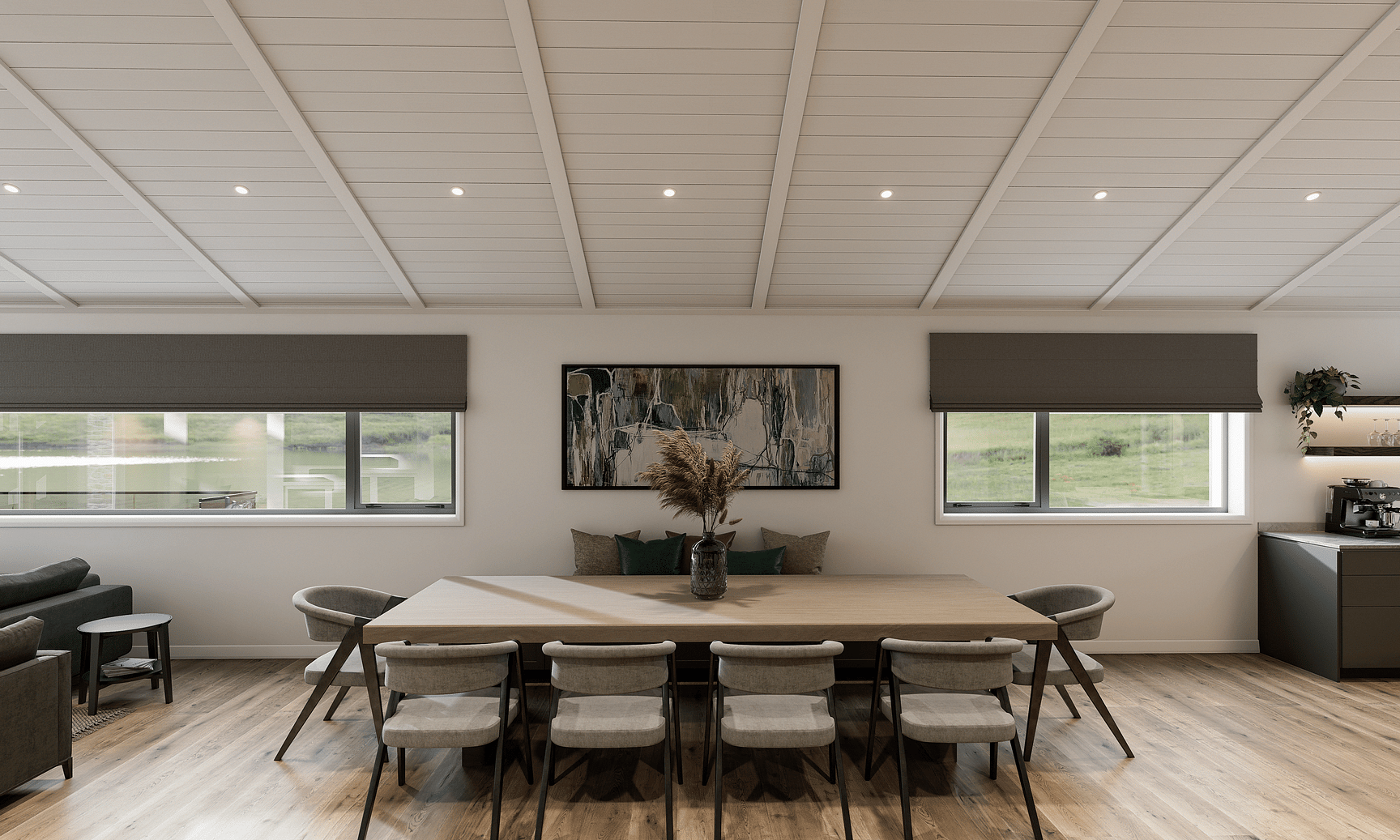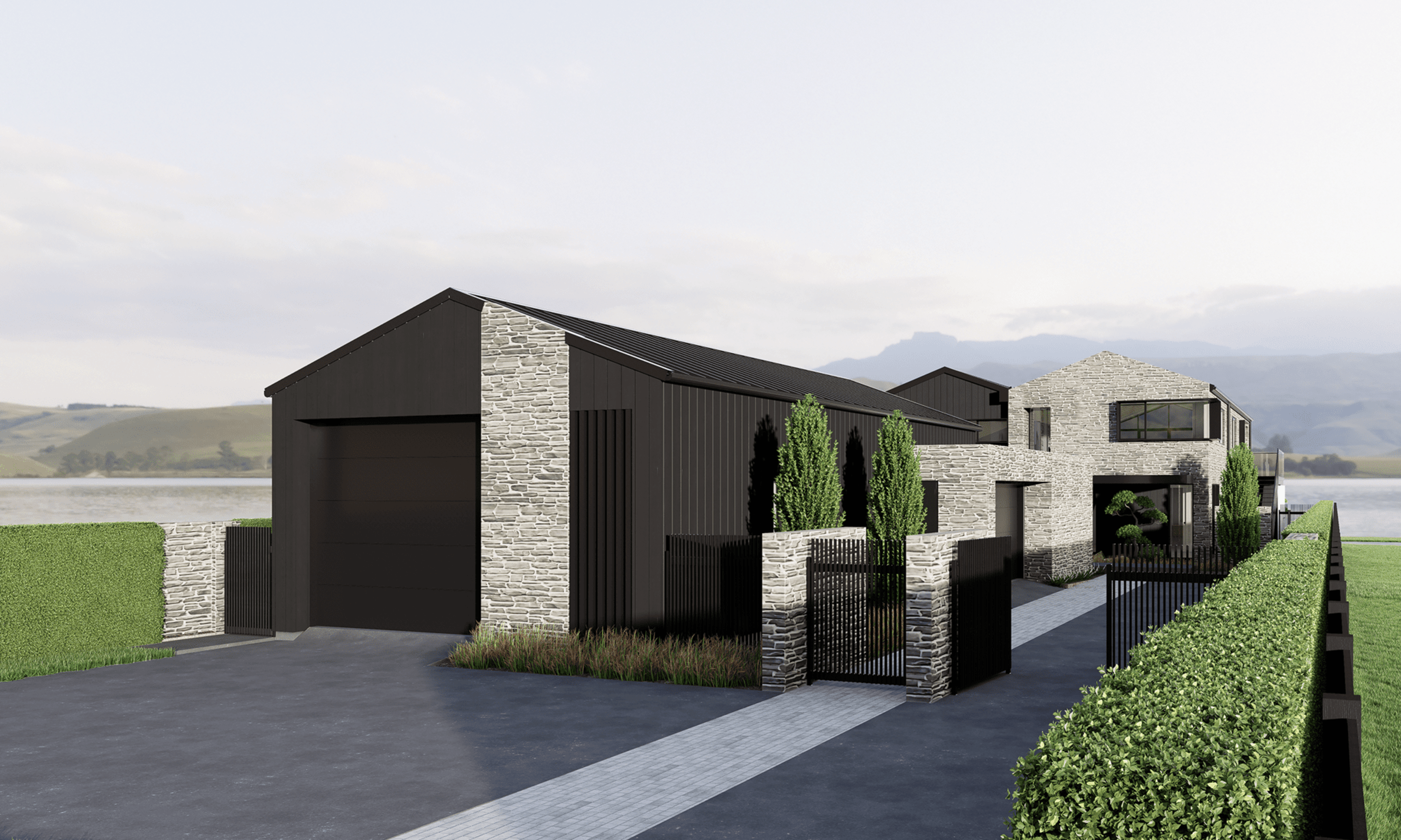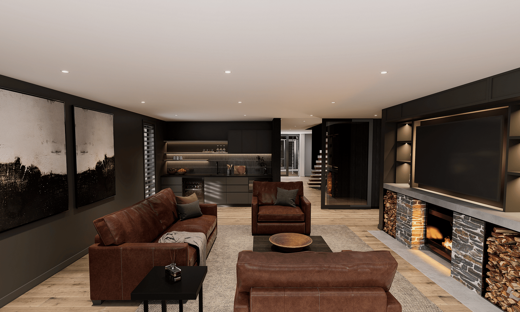 Durable, timeless materiality underpins the design both inside and out. Burnt cedar cladding, natural stone, and layered finishes create depth, richness, and a sense of permanence, reinforcing a classic lake house aesthetic. The result is a robust yet refined home—crafted for longevity, connection, and effortless lakeside living.