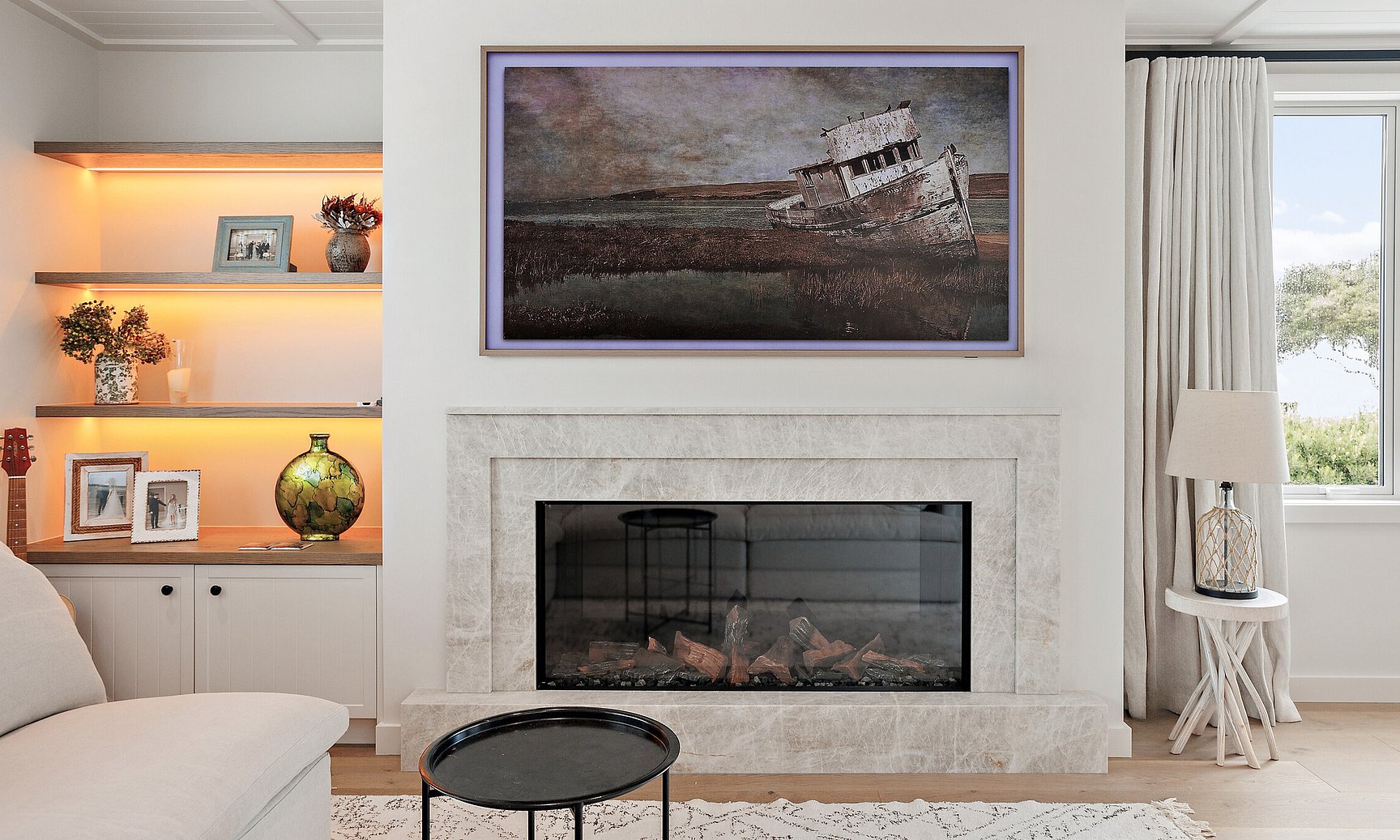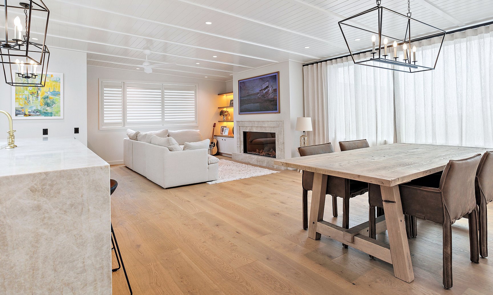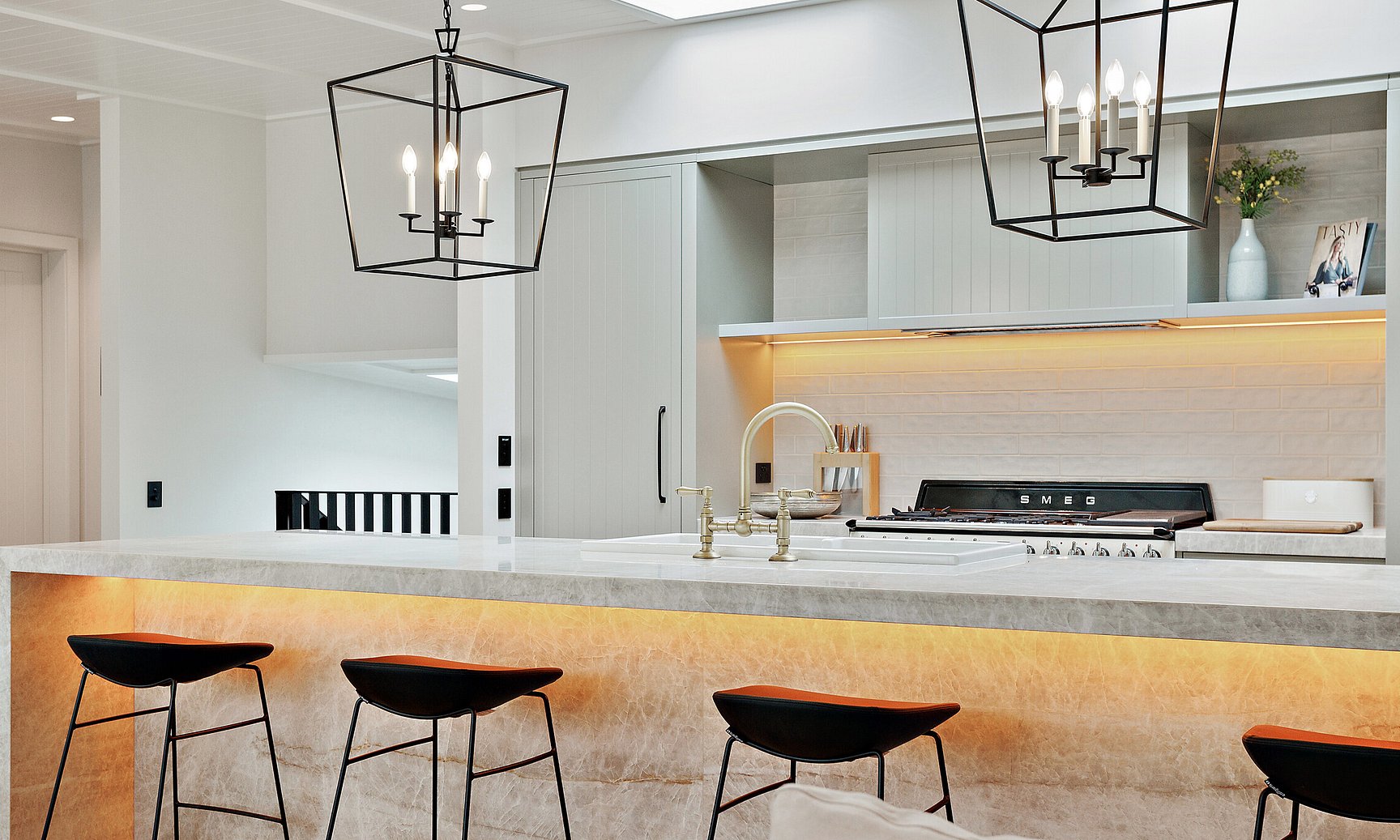 This 1990s Kiwi bach underwent a full architectural transformation, reimagining the home as a modern, high-end coastal retreat. Plaster cladding was replaced with sleek Titania Coloursteel wide-tray panels, giving the exterior a contemporary coastal feel. The floor plan was reconfigured to frame expansive ocean views, with extended living areas and large glazing units creating light-filled, seamless interiors. Luxury finishes and a timeless material palette elevate the home, while a Louvretec-covered entertaining area extends the main living space for effortless indoor-outdoor coastal living.