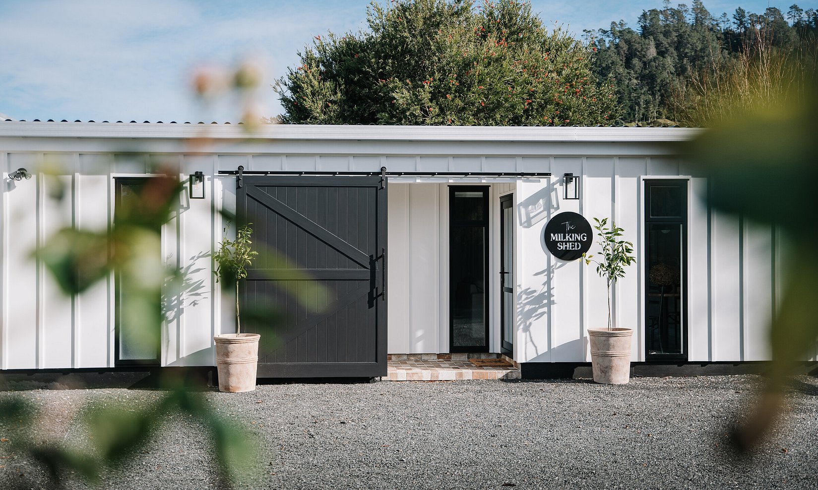 Historic milking shed transformed to stylish guest accommodation, enhancing the Waiau Homestead’s charm.