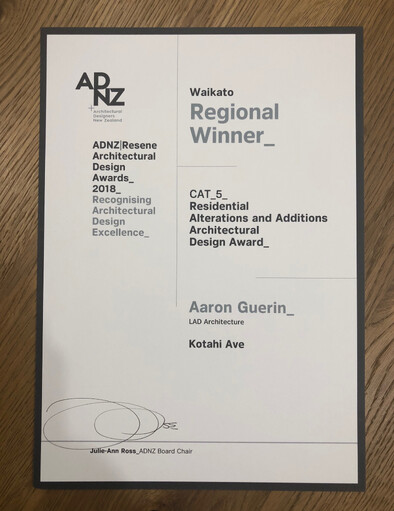 The LAD team were SUPER proud to walk away with the ADNZ Waikato Regional Award for our ‘KOTAHI AVE’ Project at last nights Award Dinner! 🤗 Well done to our amazing clients, along with Scott Nickel & his building team for their superb craftsmanship.